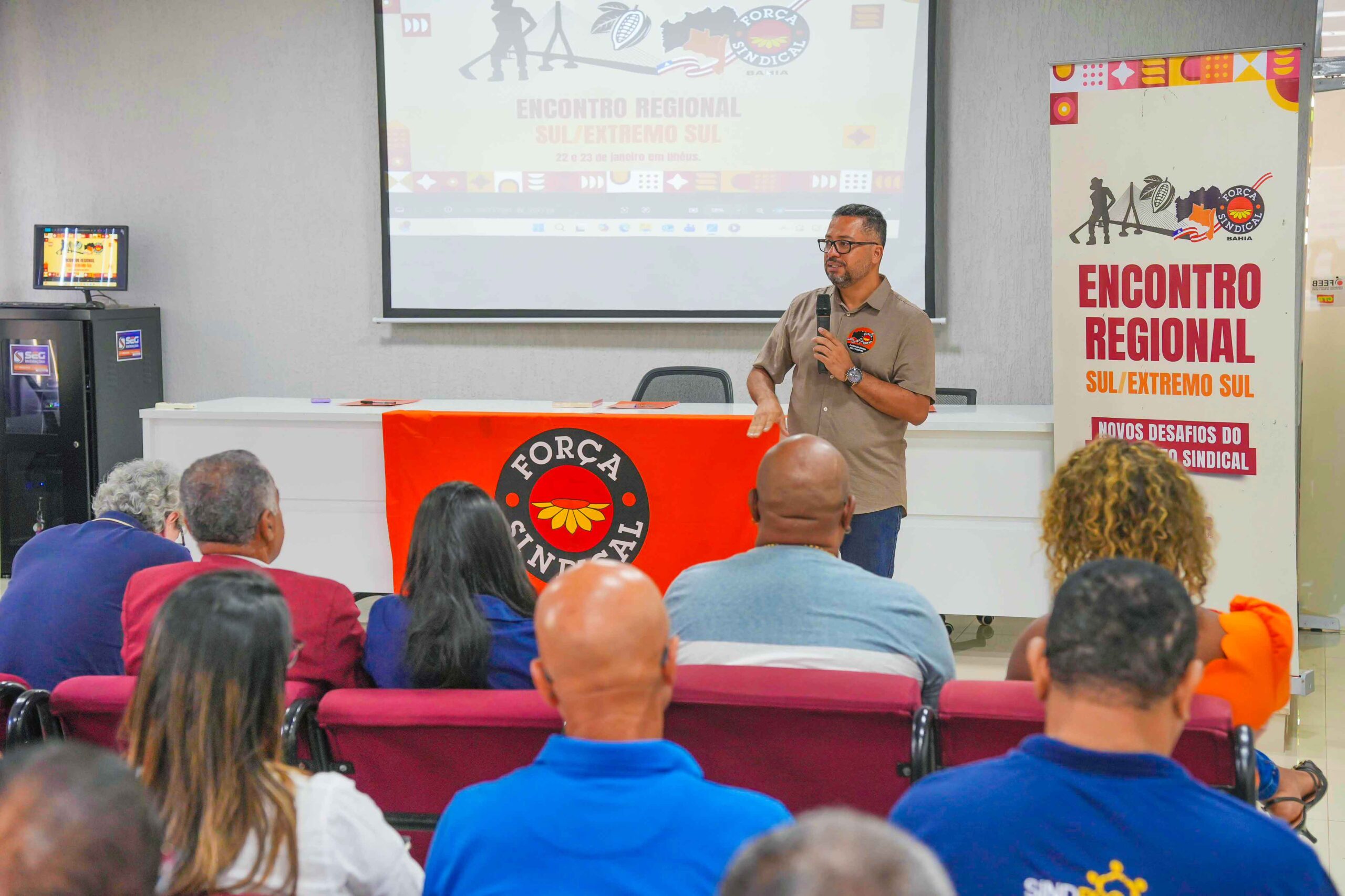 Lideranças sindicais que representam diversas categorias da classe trabalhadora participaram, do Encontro Regional Sul e Extremo Sul, promovido pela Força Sindical Bahia, na sede do Sindicato dos Bancários do município de Ilhéus, na última quinta-feira (21). A atividade reuniu dirigentes de sindicatos da região com o objetivo de refletir, debater e construir estratégias diante dos desafios enfrentados pelo movimento sindical no atual contexto político, econômico e social do país.